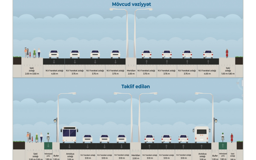 Bakıda 8 Noyabr prospektində avtobus və velosiped zolaqları təşkil ediləcək