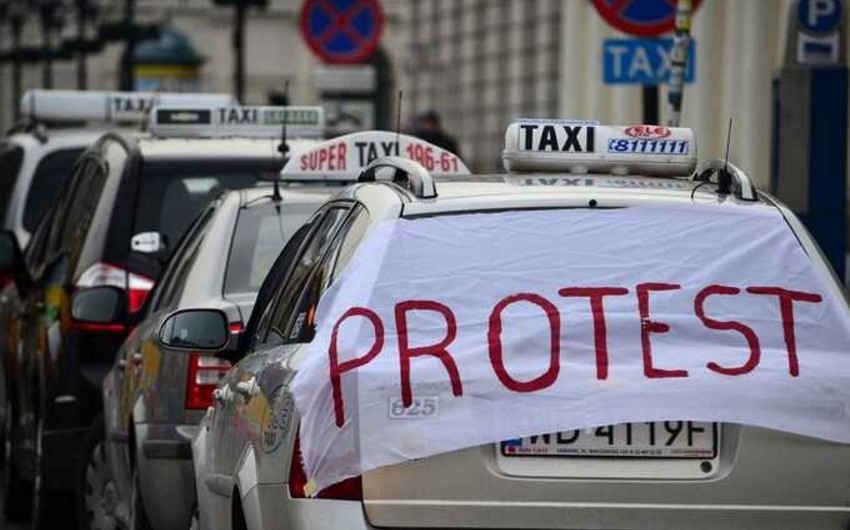 Varşavada taksi sürücüləri şəhərin mərkəzini bağlamağa çalışırlar