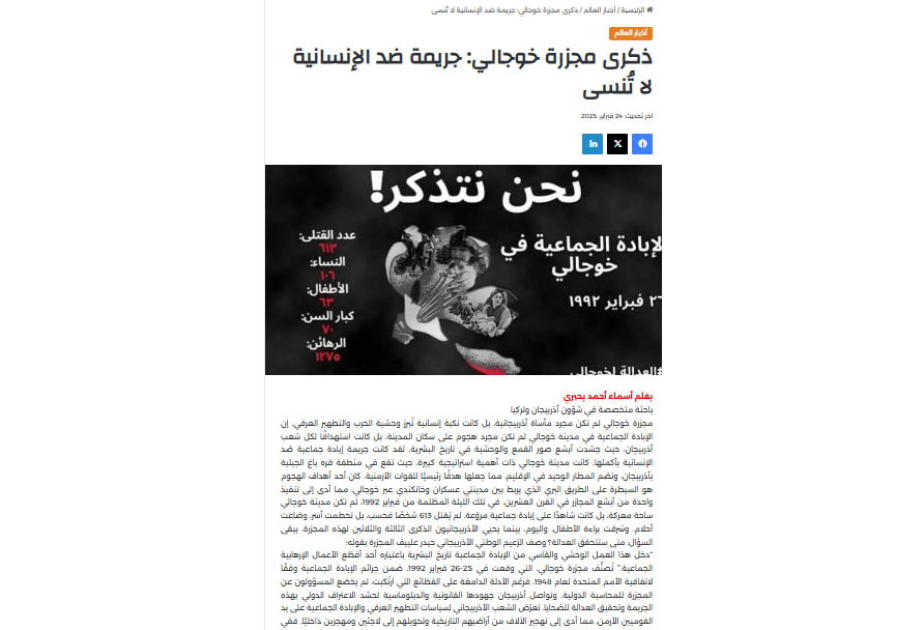 Ərəb mediası Xocalı soyqırımından yazır