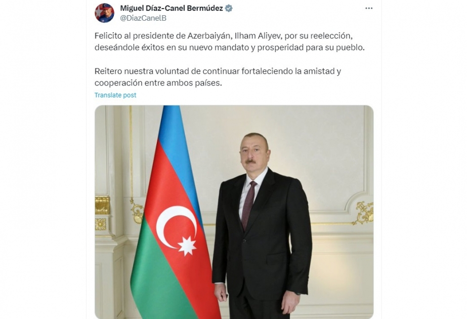 Kuba Prezidenti İlham Əliyevi seçkilərdə qələbəsi münasibətilə təbrik edib