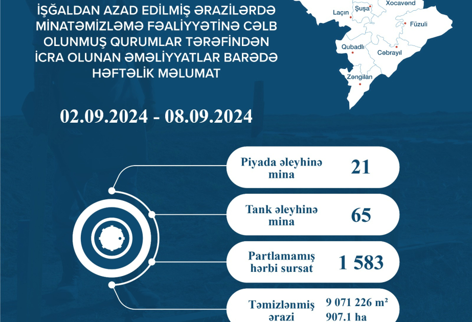ANAMA: Ötən həftə 1583 partlamamış hərbi sursat zərərsizləşdirilib