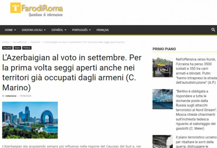 İtaliya qəzeti Azərbaycanda keçiriləcək parlament seçkilərindən yazıb