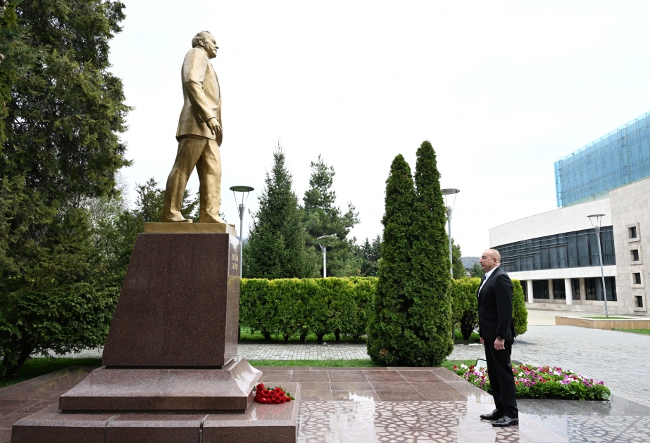 AZƏRTAC xəbər verir ki, dövlətimizin başçısı İlham Əliyev Ümummilli Lider Heydər Əliyevin Qəbələ şəhərində ucaldılmış abidəsini ziyarət edib, önünə gül dəstəsi qoyub.