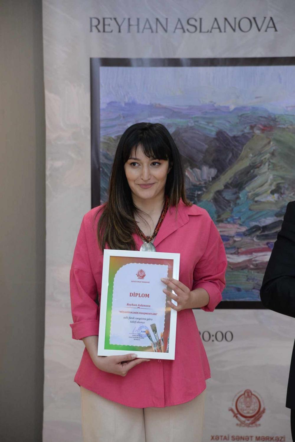 20 aprel 2024-cü il tarixində Xətai Sənət Mərkəzində gənc rəssam Reyhan Aslanovanın “Müşahidələrin fraqmentləri” adlı fərdi yaradıcılıq sərgisi keçirilmişdir.