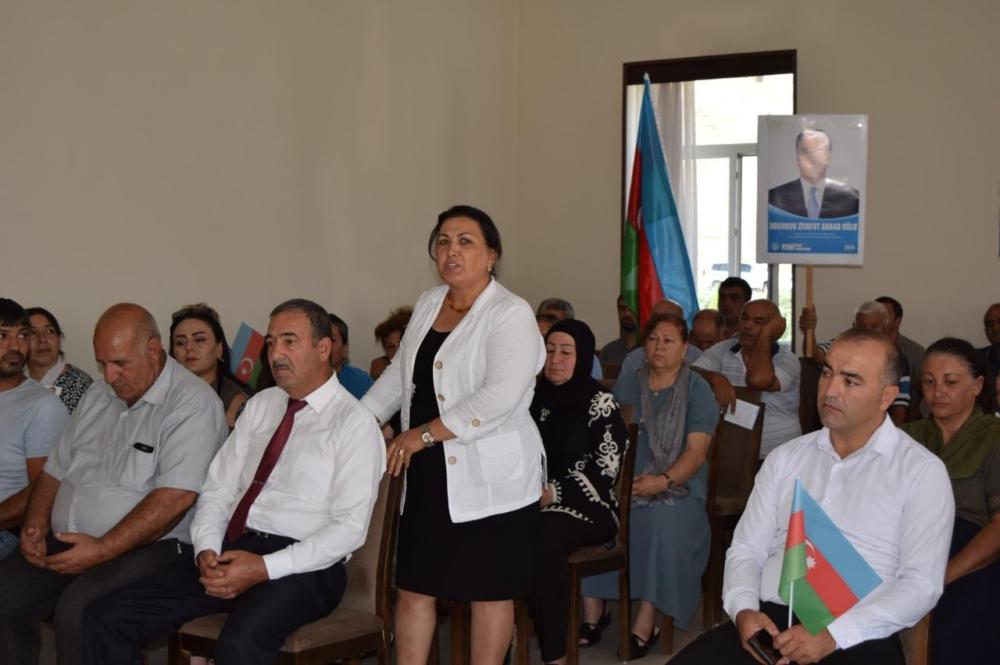 Çıxış edən deputatlığa namizəd Ziyafət Əsgərov əvvəlcə YAP-ın seçki platforması haqqında ətraflı məlumat verib. Həmçinin ,Ümummilli Lider Heydər Əliyev tərəfindən əsası qoyulmuş və bu gün Azərbaycan Respublikasının Prezidenti, Yeni Azərbaycan Partiyasının Sədri İlham Əliyev tərəfindən həyata keçirilən siyasətin uğurlarından geniş bəhs edib. O bildirib ki,: “Sözsüz gələcək inkişaf, yeni hədəflərin reallaşdırılması, Azərbaycanın qüdrətinin daha da artırılması Heydər Əliyev ideallarının təzahürüdür. Azərbaycanı işıqlı gələcəyə aparan tək yol Heydər Əliyev yoludur!”Z.Əsgərov çıxışında seçiciləri parlament seçkilərində fəal iştirak etməyə və ən layiqli namizədə səs verməyə çağırıb. O, deputat seçiləcəyi təqdirdə ona göstərilən inam və etimadı layiqincə doğrultmağa çalışacağına söz verib. Sonda seçicilərin sualları cavablandırılıb.