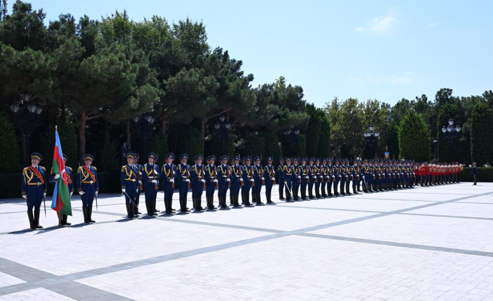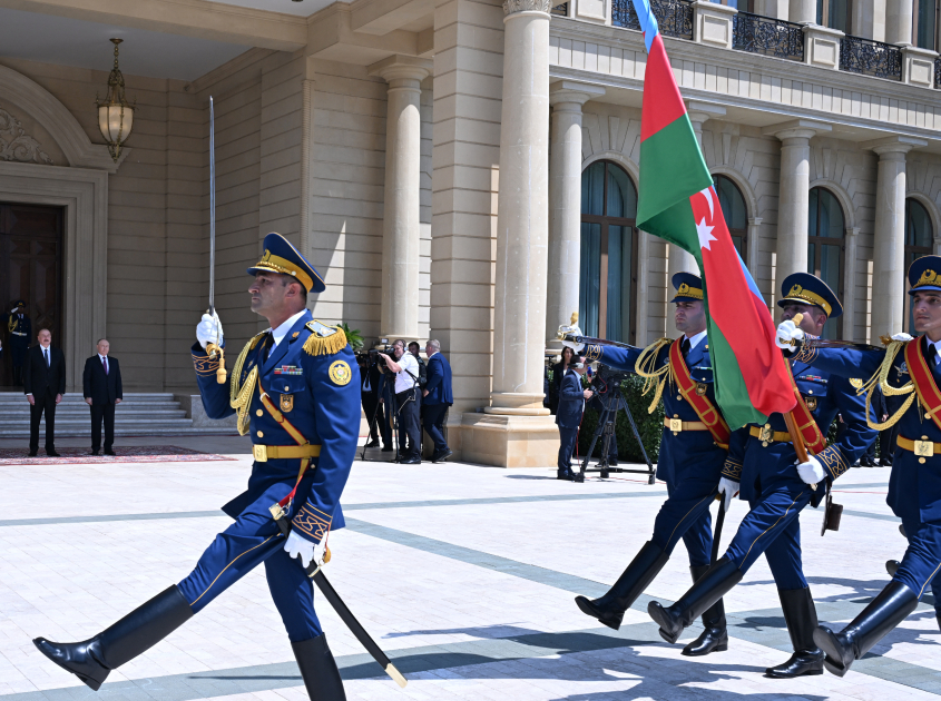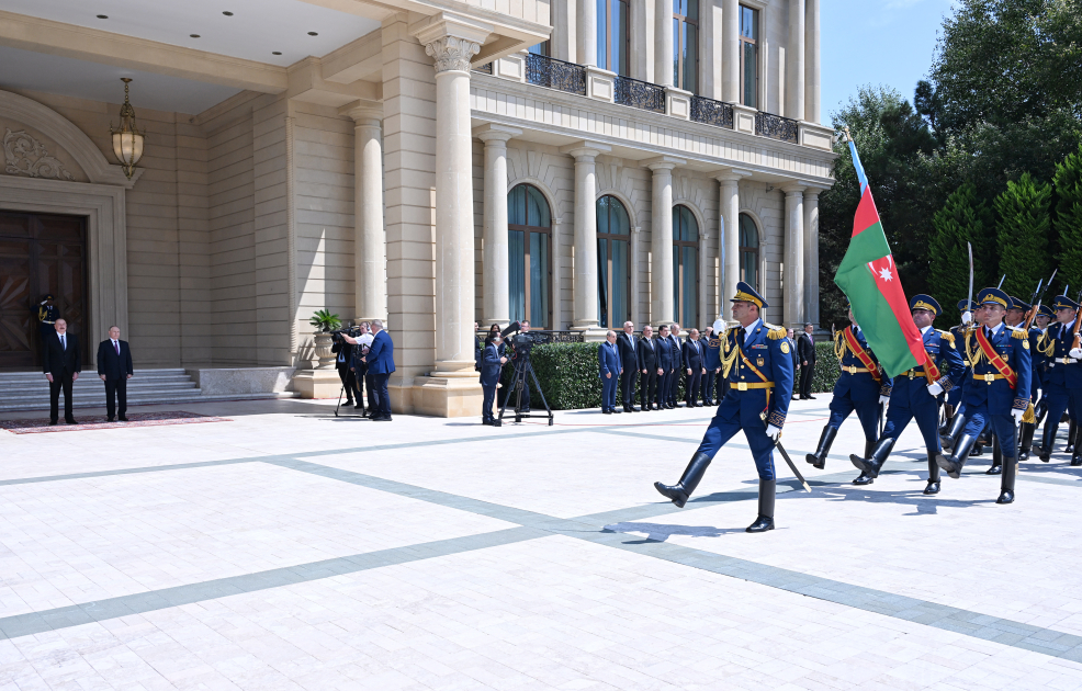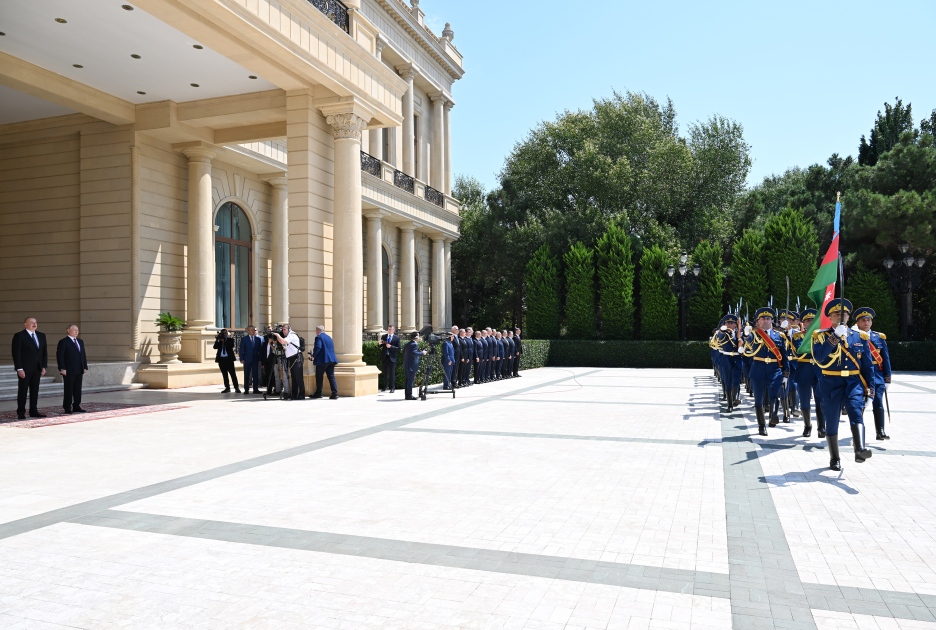 Fəxri qarovul dəstəsi dövlət başçılarının qarşısından keçdi.