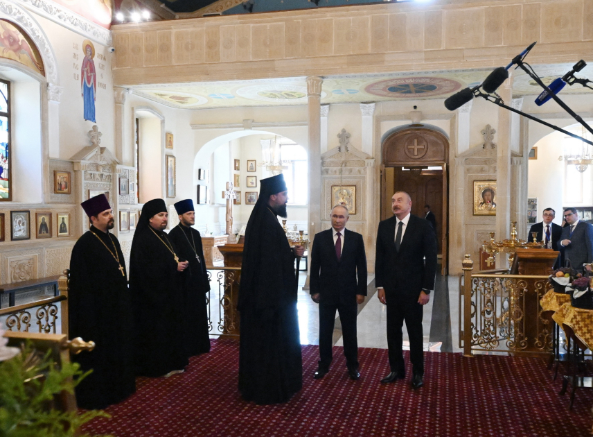 Azərbaycan və Rusiya prezidentləri kilsəyə xatirə hədiyyələri təqdim etdilər.