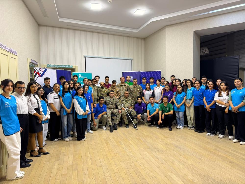 Daha sonra Azərbaycan Könüllüləri, Azərbaycan Könüllü Təşkilatları İttifaqının təşkilatçılığı, “Gənc Könüllülər” İctimai Birliyi və “Böyük Qayıdış” Gənclər Təşkilatının birgə tərəfdaşlığı ilə 44 günlük Vətən müharibəsində iştirak etmiş döyüşçü qazilərlə görüşüb. Qəhrəman qazilərimiz 44 günlük Vətən müharibəsində cənab Prezident, Müzəffər Ali Baş Komandan İlham Əliyevin rəhbərliyi altında Azərbaycan Ordusunun döyüş meydanında əldə etdiyi şanlı Zəfərdən, müharibə ilə bağlı xatirələrindən, göstərdikləri igidliklərdən bəhs ediblər.