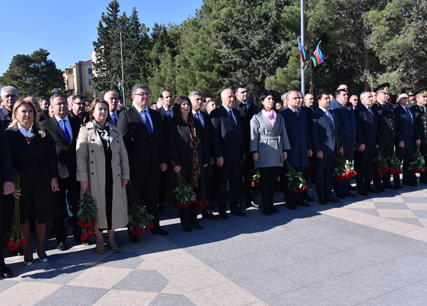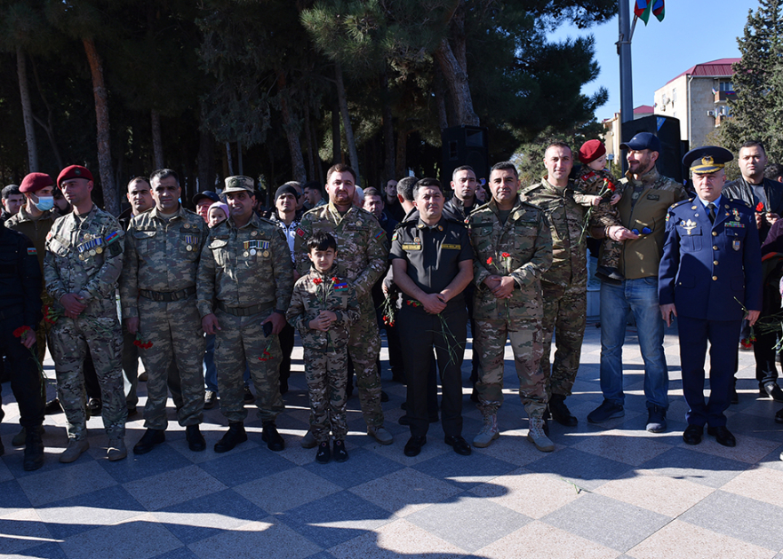 AZƏRTAC xəbər verir ki, Sumqayıt Şəhər İcra Hakimiyyətinin başçısı Zakir Fərəcov, Milli Məclisin deputatları Səbinə Salmanova, Mehriban Vəliyeva, Elnarə Akimova, Tahir Mirkişili və Zaur Şükürov, həmçinin hüquq-mühafizə orqanlarının, idarə və təşkilatların rəhbərləri, ictimaiyyət nümayəndələri burada ucalan “Qalib əsgər” abidəsinin önünə tər güllər düzüblər.