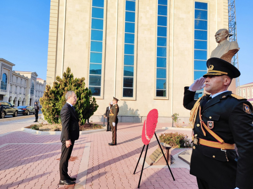 Türkiyənin Naxçıvan Muxtar Respublikasındakı baş konsulu Asip Kaya abidə önünə əklil qoyub.