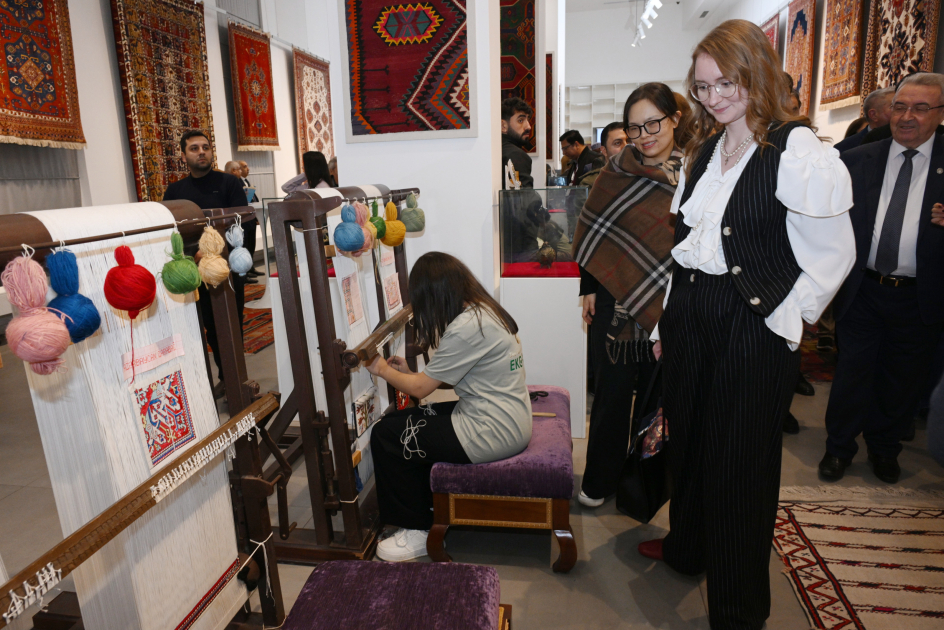 Xalçalarla tanışlıq zamanı iştirakçılar Qərbi Azərbaycan xalçalarının naxışları olan kiçikölçülü xalçaların toxunuşu prosesində də iştirak ediblər.