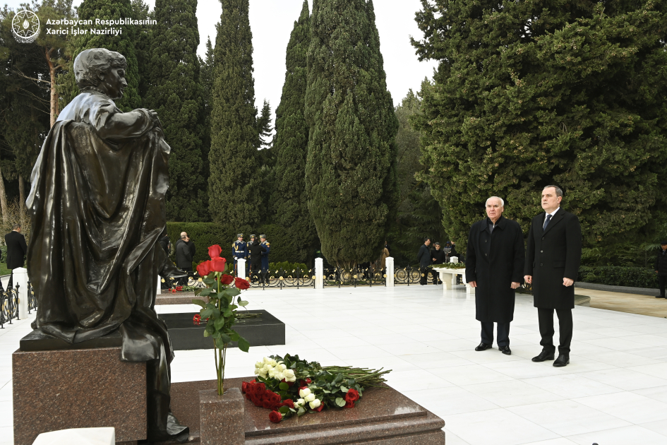 Nazirliyin mətbuat xidmətindən AZƏRTAC-a verilən məlumata görə, ziyarət zamanı Azərbaycanın dövlətçilik tarixində ölkəmizin müstəqilliyinin möhkəmlənməsi, xalqımızın inkişaf və rifahının yüksəldilməsi istiqamətində misilsiz xidmətlər göstərmiş Ümummilli Lider Heydər Əliyevin məzarı qarşısına gül dəstələri düzülüb, Ulu Öndərin əbədiyaşar xatirəsi dərin hörmət və ehtiramla yad edilib.