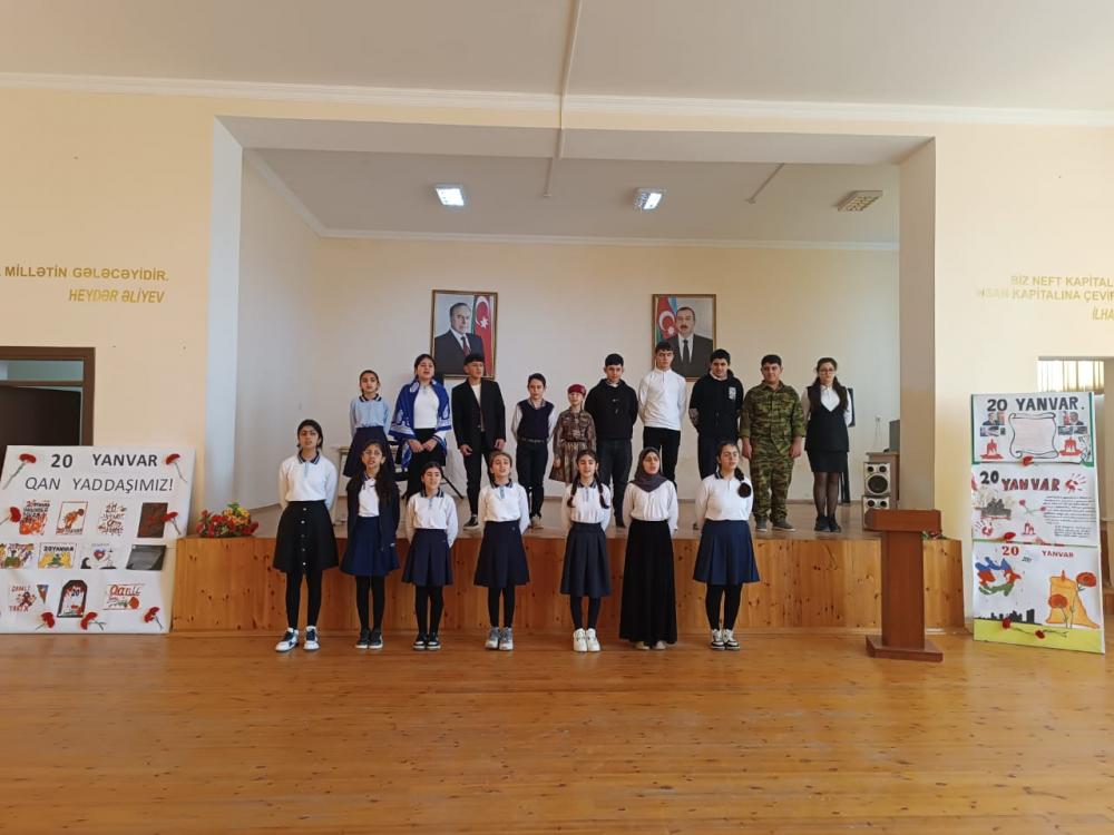 Keçirilən tədbirlərdə məktəblilərin təqdimatında 20 Yanvar faciəsinə həsr olunmuş şerlər dinlənilmiş, kompozisiyalar və rəsm sərgiləri nümayiş olunmuşdur.