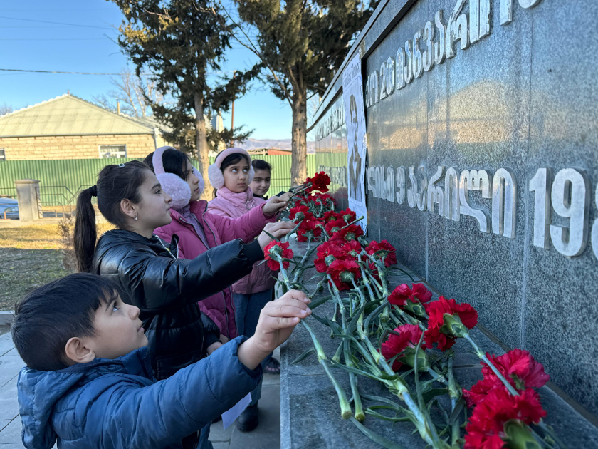 AZƏRTAC xəbər verir ki, Azərbaycanın Gürcüstandakı səfirliyinin məsul əməkdaşları Samir Əbdürəhmanov, Ramiz Hacızadə, Saqareco rayonunun meri Aftandil Qulikaşvili, ictimaiyyət nümayəndələri, 20 Yanvar şəhidi Ələsgər Qayıbovun yaxınları, məktəblilər Qaraçöp kəndindəki “Şəhidlik” memorialı önünə gül dəstələri düzüb, şəhidlərin xatirəsini ehtiramla anaraq onların ruhuna dualar oxuyublar.