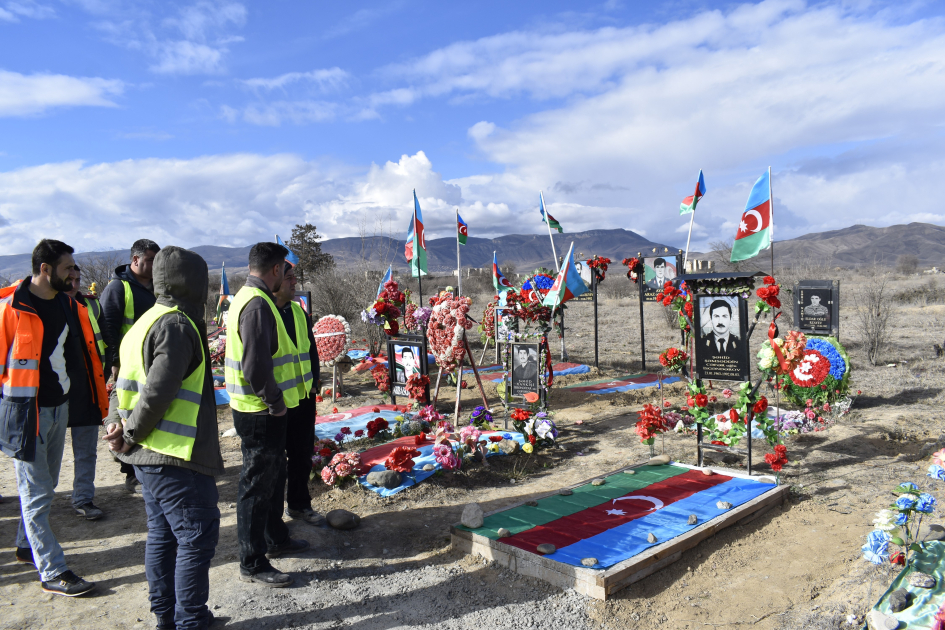 Şəhidlərin məzarları da ziyarət olunub, üzərinə gül dəstələri düzülüb.