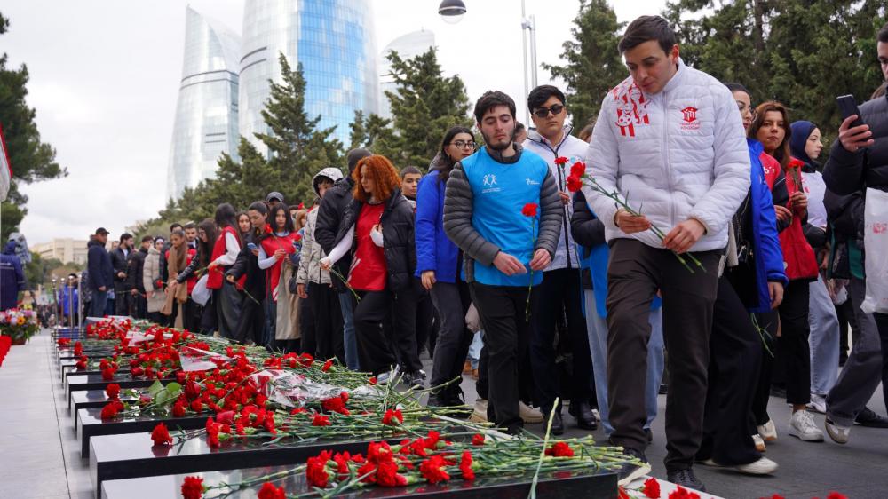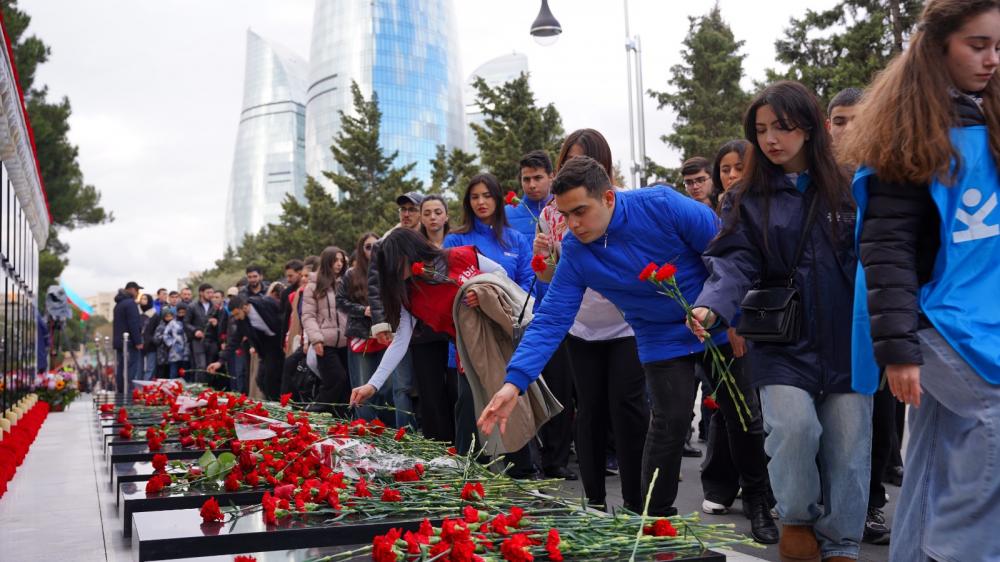 Ölkənin aparıcı könüllü təşkilatlarını təmsil edən ümumilikdə 300-dən çox Azərbaycan Könüllüsü, təşkilat rəhbərləri ölkəmizin azadlığı və müstəqilliyi uğrunda canından keçən qəhrəmanların şərəfli xatirəsinə ehtiram ifadəsi olaraq Şəhidlər Xiyabanını ziyarət edib, şəhidlərimizin məzarları önünə tər gül dəstələri düzüblər.