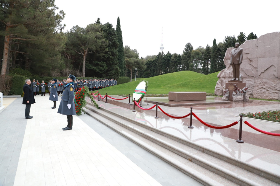 Daha sonra Şəhidlər xiyabanında Azərbaycanın müstəqilliyi və ərazi bütövlüyü uğrunda canlarından keçmiş Vətən övladlarının unudulmaz xatirəsi yad edilib, “Əbədi məşəl” abidə kompleksinin önünə əklil qoyulub.