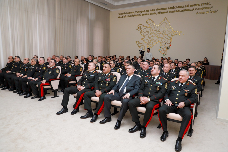 Daha sonra Səfərbərlik və Hərbi Xidmətə Çağırış üzrə Dövlət Xidmətinin məsul şəxsi Tehran Babatov tərəfindən Xidmət rəisinin imzaladığı əmrlər elan olunaraq fərqlənənlərə hərbi rütbələr, medallar və fəxri fərmanlar təqdim edilib.