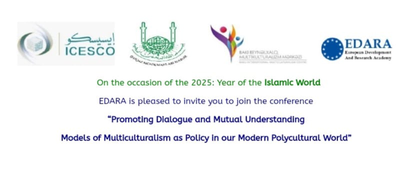 Avropa İnkişaf və Araşdırmalar Akademiyası (EDARA), ICESCO, Bakı Beynəlxalq Multikulturalizm Mərkəzi (BBMM) və Qafqaz Müsəlmanları İdarəsinin birgə təşkilatçılığı ilə “Dialoqun və qarşılıqlı anlaşmanın təşviqi: Multikulturalizm modelləri müasir multikultural dünyamızda siyasət kimi” mövzusunda panel müzakirəsi təşkil olunub. Panel müzakirəsi “İslam dünyası 2025-ci il Avropada və Belçika Krallığında’’ Brüsseldə keçirilən beynəlxalq dinlərarası konfrans çərçivəsində keçirilib.