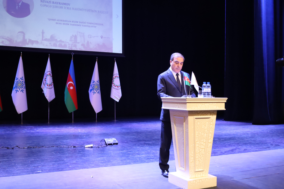 Konfransı açan Gəncə Şəhər İcra Hakimiyyətinin başçısı Niyazi Bayramov qədim Nizami yurdunda Qərbi Azərbaycanla bağlı belə tədbirin keçirilməsinin önəmindən söz açıb.