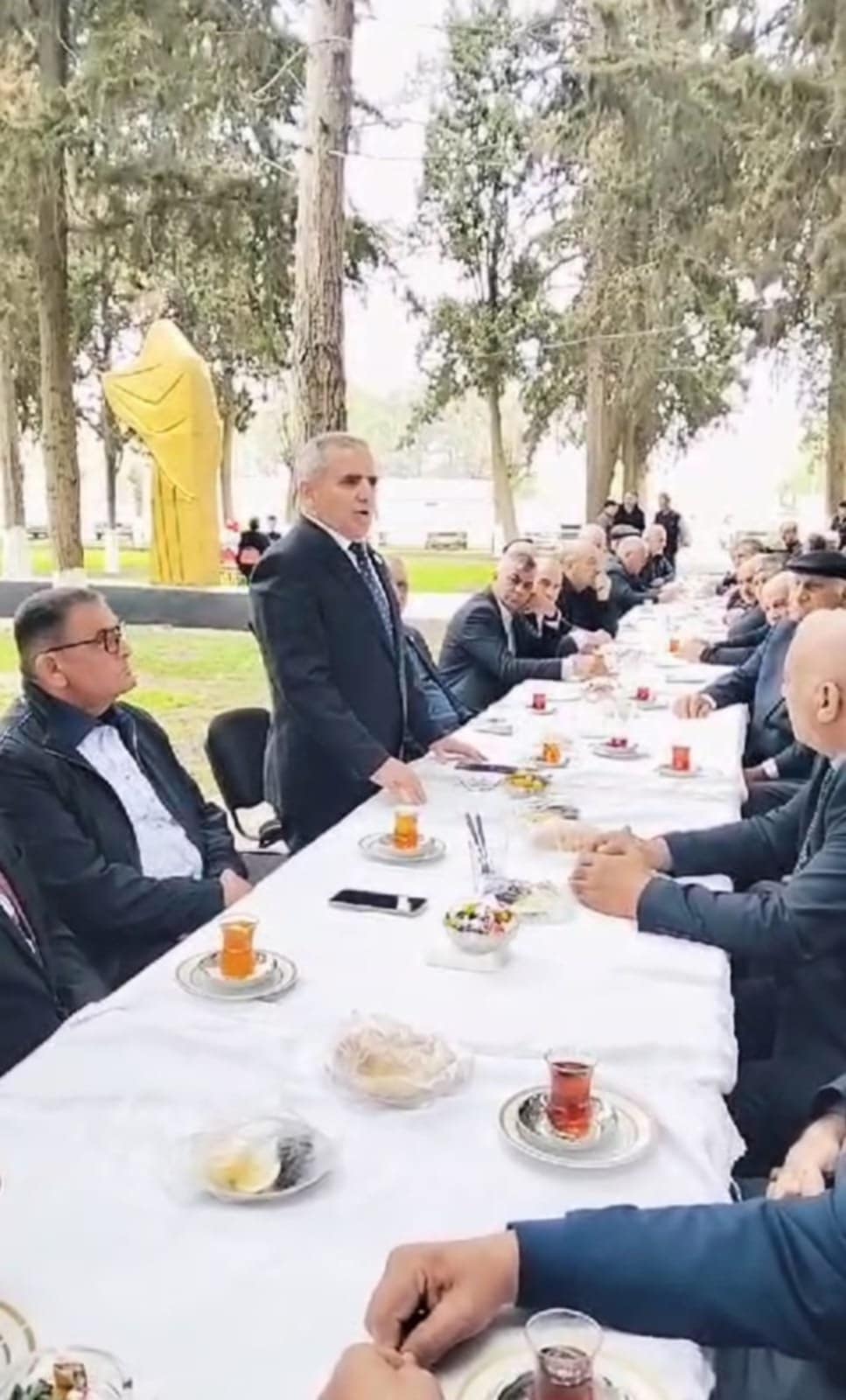 İmişli Rayon Ağsaqqallar Şurası sədrinin birinci müavini Vahid Tağıyev çıxışında əvvəl Qarabağ müharibəsində Məzrəli kəndindən 17 nəfərin şəhidlik zirvəsinə yüksəlməsi haqqında danışmışdır.