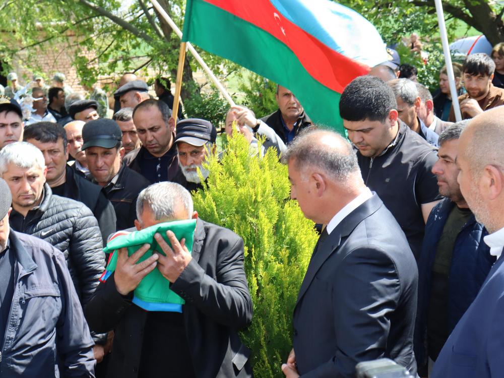 Rayon İcra Hakimiyyətinin başçısı Firdovsi Əliyev şəhidimizin ailə üzvlərinə bir daha baş sağlığı verib. Prezident İlham Əliyevin rəhbərliyi ilə hərbçilərimizin göstərdiyi rəşadətdən danışıb. Qazanılan tarixi qələbə ilə şəhidlərimizin qanının yerdə qalmadığını vurğulayıb. Mərasimdə şəhidimizin tabutu üzərindəki Azərbaycanın Respublikasının üçrəngli bayrağı şəhidin ailəsinə təqdim edilib.