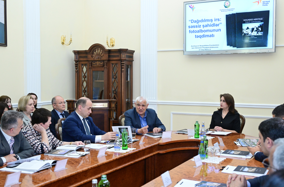 Azərbaycan Respublikası Prezidentinin İşlər İdarəsinin Prezident Kitabxanasında Bakı Beynəlxalq Multikulturalizm Mərkəzi (BBMM), Mədəniyyət Nazirliyi və Qarabağ Dirçəliş Fondunun birgə layihəsi olan “Dağıdılmış irs: səssiz şahidlər” fotoalbomunun təqdimatı keçirilib.