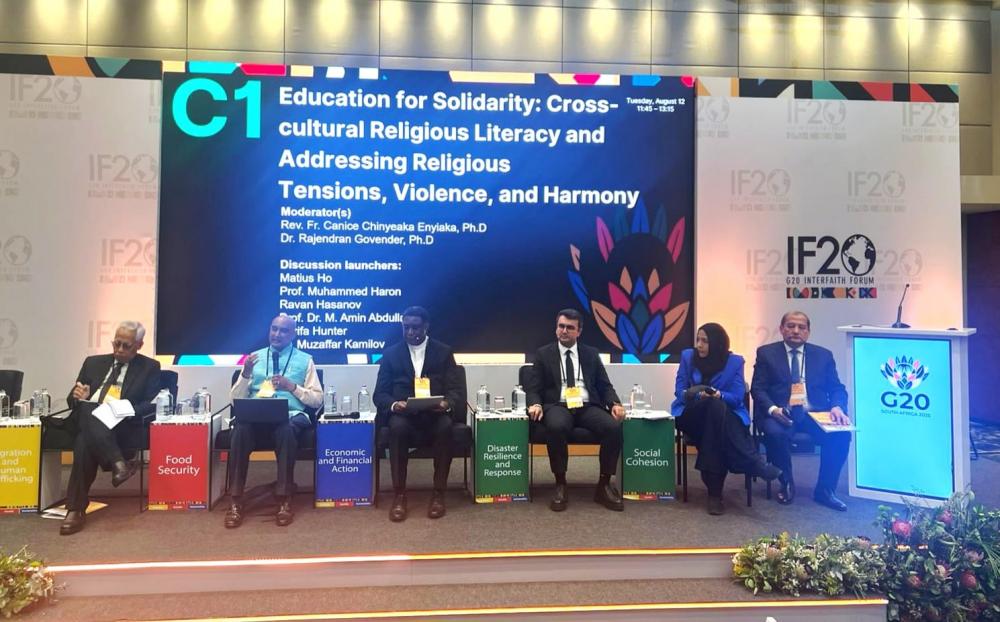 Avqustun 10-dan 14-dək Cənubi Afrika Respublikasının Keyptaun şəhərində G20 Dinlərarası Dialoq Forumu keçirilir. “Fəaliyyətdə humanizm: Həssas icmalar diqqət mərkəzində” mövzusuna həsr olunan Forumda Qafqaz Müsəlmanları İdarəsinin sədri Şeyxülislam Allahşükür Paşazadənin rəhbərliyi altında Azərbaycan nümayəndə heyəti də iştirak edir. Nümayəndə heyətinin tərkibinə Bakı Beynəlxalq Multikulturalizm Mərkəzinin icraçı direktoru Rəvan Həsənov, Mərkəzin icraçı direktorunun müavini Ramin Qəmbərov, Milli Məclisin deputatları Fazil Mustafa və Cavanşir Paşazadə daxildir.
