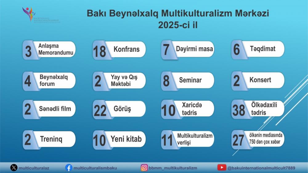 Beləliklə, 2025-ci il Bakı Beynəlxalq Multikulturalizm Mərkəzi üçün multikultural dəyərlərin beynəlxalq müstəvidə təşviqi, Azərbaycanın tolerantlıq modelinin dünyaya sistemli şəkildə təqdim olunması, eləcə də yeni tərəfdaşlıqlar və elmi-nəzəri əsasların möhkəmləndirilməsi baxımından uğurlu və dinamik bir il kimi yadda qalıb. Mərkəzin fəaliyyəti Azərbaycanın qlobal miqyasda multikulturalizm, tolerantlıq, dinlərarası və mədəniyyətlərarası dialoq sahəsində aparıcı və etibarlı tərəfdaş kimi mövqeyini daha da güclənməsinə töhfə verib.