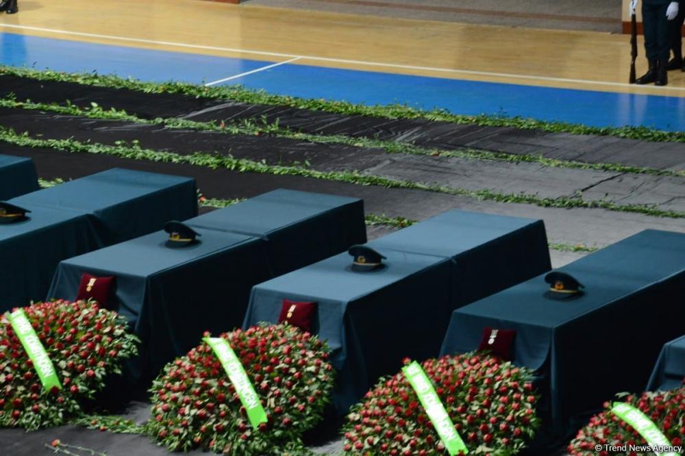 Helikopter qəzasında həlak olan hərbi qulluqçularla vida mərasimi keçirilib