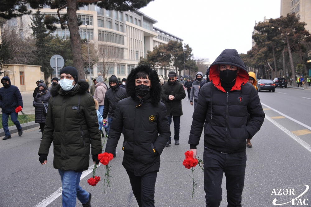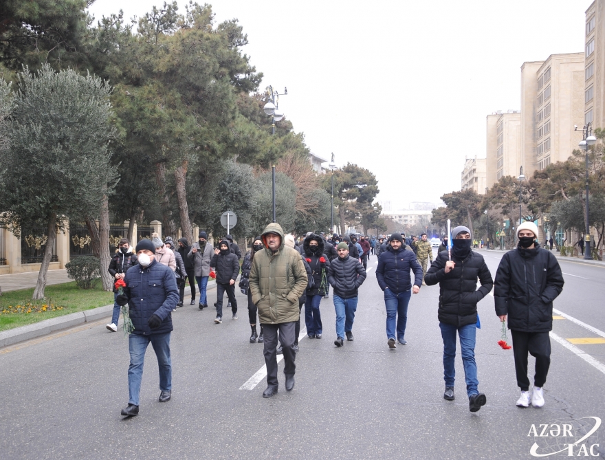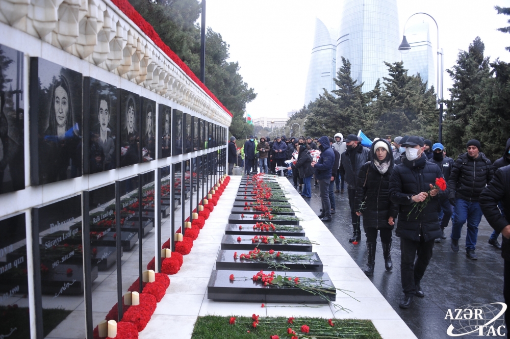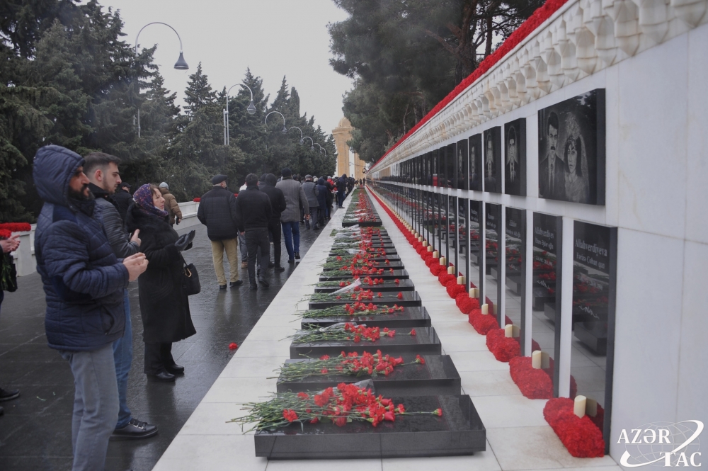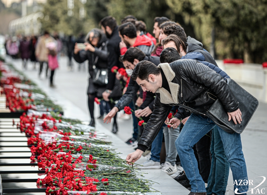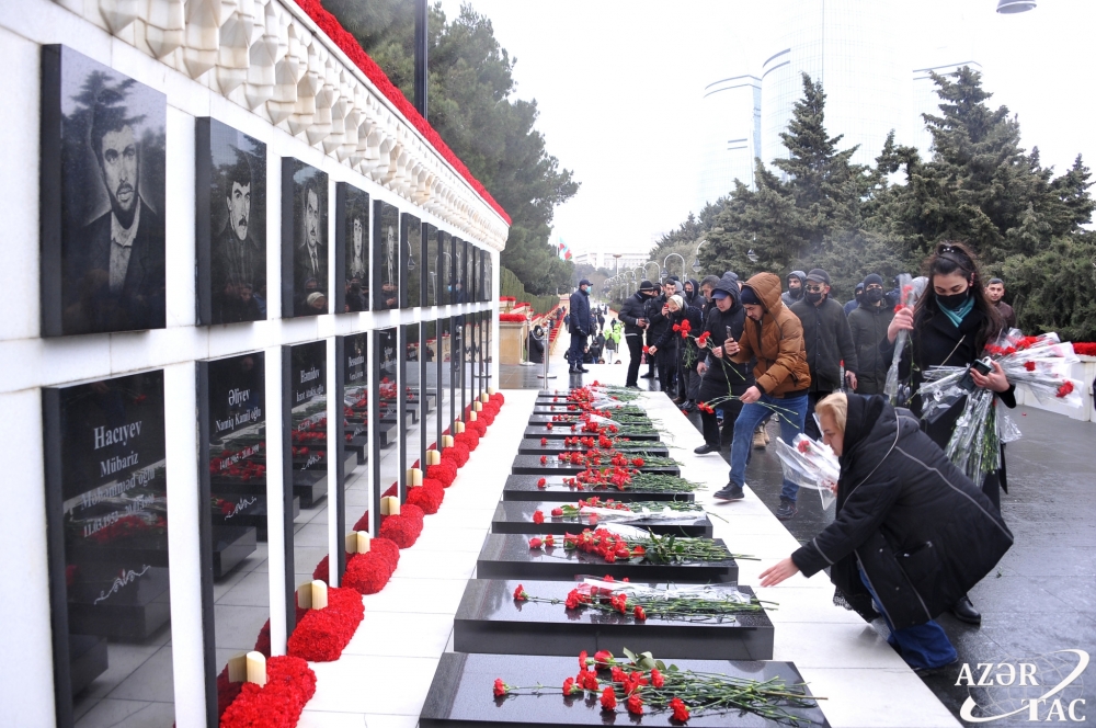 20 января, начиная с утренних часов, люди стекаются в Шехидляр хиябаны, чтобы почтить память героических сынов Родины.