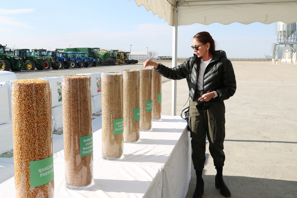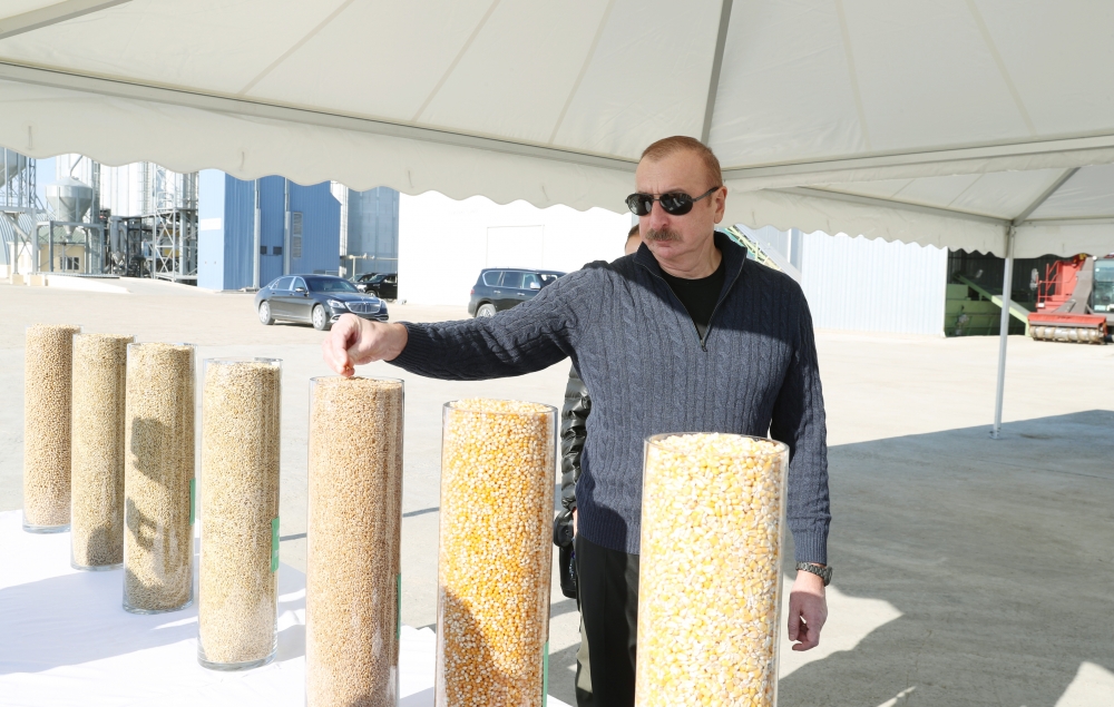 13 февраля Президент Азербайджанской Республики Ильхам Алиев и первая леди Мехрибан Алиева ознакомились с условиями, созданными в Агджабединском зерновом агропарке.