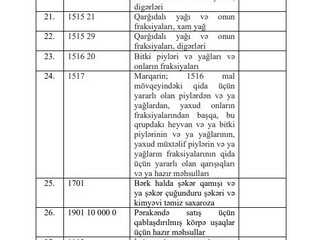 Вывоз из Азербайджана ряда основных продовольственных товаров будет регулироваться
