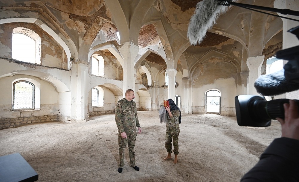 Dövləti başçımızın 27 il 4 ay sonra – 2020-ci il noyabr ayının 23-də Ağdama ilk səfəri yeni tarix kitabına ən şərəfli səhifələrdən biri olaraq həkk olunub. Səfər zamanı Prezidentin Ağdamda Azərbaycanın üçrəngli bayrağını qaldırması səhnəsini xalqımız heç vaxt unutmayacaq. İlk səfər çərçivəsində Prezident İlham Əliyev və birinci xanım Mehriban Əliyeva Ağdam məscidində də oldular. Xocalı soyqırımında sağ qalan xocalıların ümid, pənah yerinə çevrilən qoşa minarəli məscid də yırtıcı düşmən tərəfindən vəhşicəsinə dağıdılıb. Prezident İlham Əliyev Məkkədən gətirdiyi “Qurani-Kərim”i Ağdam məscidinə bağışladı.