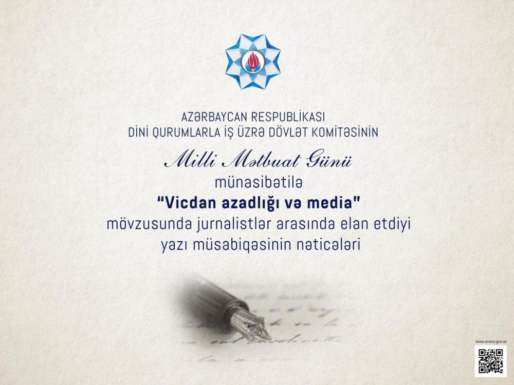 Azərbaycan Respublikası Dini Qurumlarla İş üzrə Dövlət Komitəsinin Milli Mətbuat Günü münasibətilə jurnalistlər arasında elan etdiyi “Vicdan azadlığı və media” mövzusunda yazı müsabiqəsinin qalibləri müəyyən olunub.