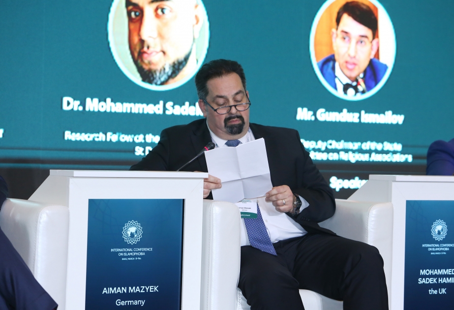 Bakı Beynəlxalq Multikulturalizm Mərkəzinin islamofobiyaya qarşı gördüyü işləri yüksək dəyərləndirən Ayman Mazyek qeyd edib ki, Azərbaycan bu sahədə çox vacib addımlar atır. “Prezident İlham Əliyevin forum iştirakçılarına müraciəti zamanı vurğuladığı fikirlər tamamilə doğrudur. İslamofobiya kimi hallar bəşəri dəyərləri alt-üst edir. Qərb ölkələrində milli azlıqlara qarşı edilənlər göz önündədir. Ayrı-seçkiliyin ən böyük təzahürlərindən biri ikili standartlardır. Məsələn, Avropada müqəddəs kitab “Qurani-Kərim”in yandırılması normal qarşılanır. Ancaq həmin ölkələrdə Tövrat, İncil yandırıla bilməz. İslamı terrorçu din kimi qələmə verənlər xristianların törətdiyi terror aktlarına səssiz qalırlar. Bütün bunlar tamamilə ikili standartlardır”, - deyə Mərkəz rəhbəri bildirib.