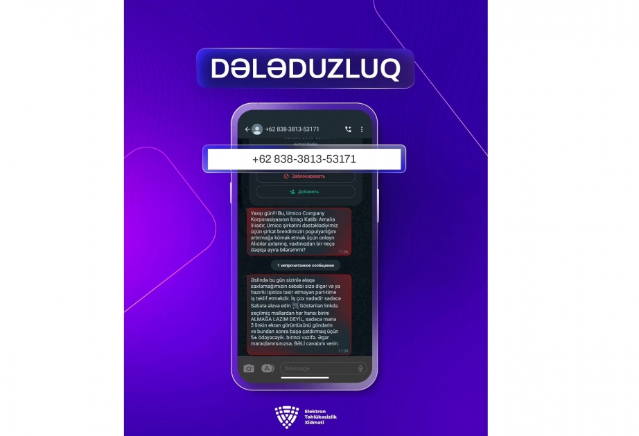 “Elektron Təhlükəsizlik Xidməti vətəndaşlardan bu cür hallara qarşı diqqətli olmağı, hər hansı qurumun həyata keçirdiyi kampaniyalarla bağlı məlumatlarla qarşılaşdıqda həmin qurumla əlaqə saxlamağı və yaxud qurumun rəsmi veb-saytına daxil olaraq məlumatı dəqiqləşdirməyi tövsiyə edir”, - deyə məlumatda qeyd olunub.