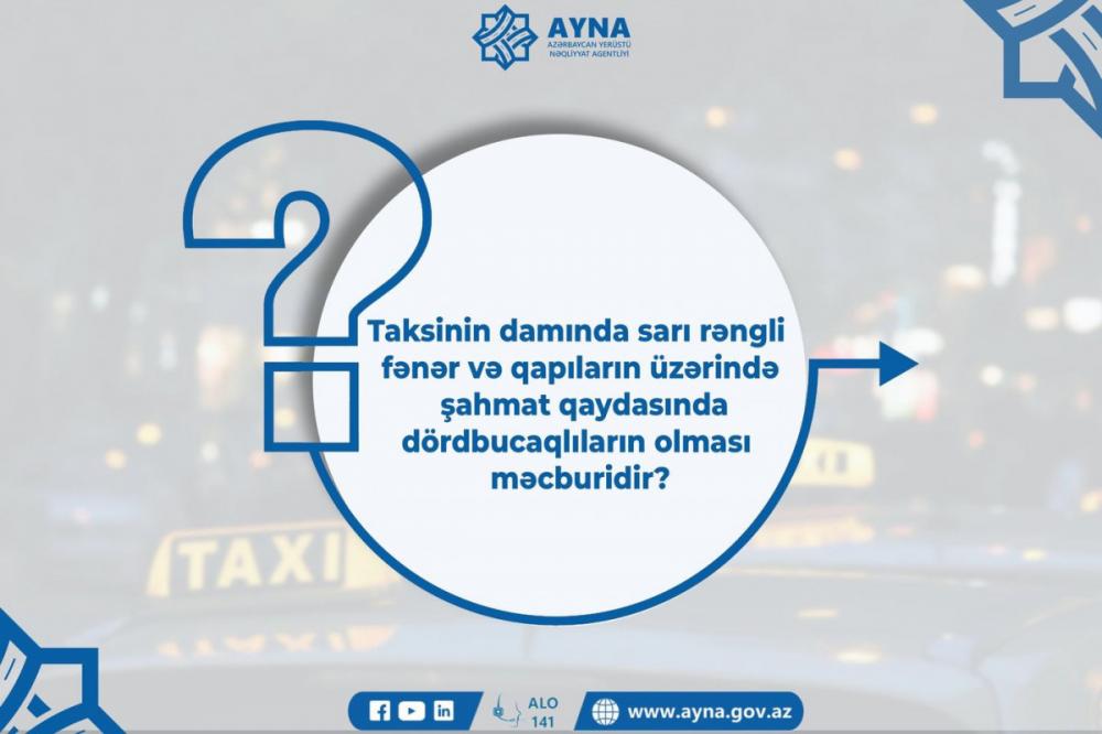 Damında “Taksi” sözü yazılmış sarı rəngli fənər və qapıların üzərində şahmat qaydasında dördbucaqlıların bütün taksilərdə olması məcburi tələb deyil.