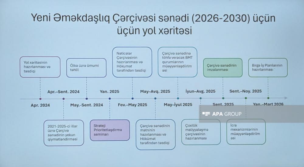"Report" xəbər verir ki, bu barədə Bakıda keçirilən “2021-2025-ci illər üçün BMT-Azərbaycan arasında Dayanıqlı İnkişaf üzrə Əməkdaşlığa dair Çərçivə Sənədi”nin icrası üzrə Hökumət-BMT Birgə İstiqamətləndirici Komitənin iclasında bildirilib.